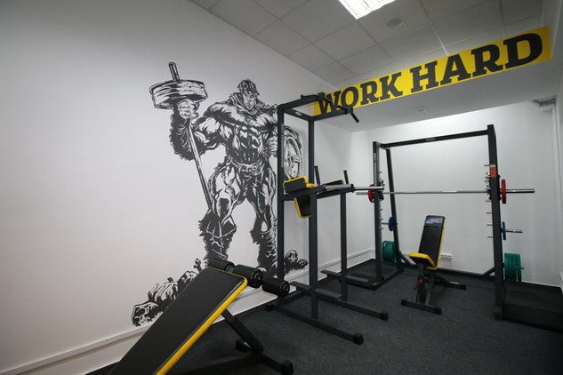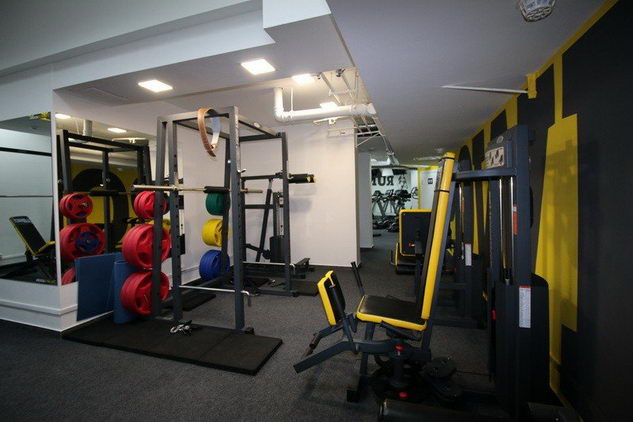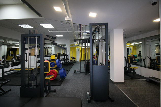 Зал с сильным характером, современным профессиональным оборудованием и брутальным ресепшеном пропитан мощной энергетикой и оформлен в мотивирующей цветовой гамме (белый, черный и желтый цвета). Само оборудование InterAtletikGym STANDART в черно/желтой гамме призывает к действию — «отдыхать нет времени».